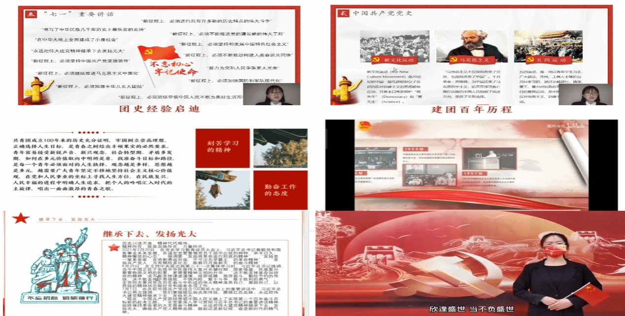 本次微团课大赛以“感悟百年团史,书写青春担当”为主题,面向9999js金沙老品牌20、21级全体团支书,采用视频录制、线上评选的方式于10月底开展。各支部团支书踊跃参加,以团员青年为授课对象,围绕党史国情、团情团史、基础团务等内容设计微团课,通过 PPT 演示进行相关展示。本次微团课大赛共收集作品20份,学院团委办公室通过线上评选共选出优秀作品6份。