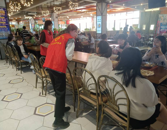 米粒虽小,犹见礼义廉耻;节俭事微,可助兴国安邦。《锄禾》一诗,让我们知其“粒粒皆辛苦”的不易,生活中更需要我们用行动去展现力行节俭的美德。2020年秋,为了光盘活动落到实处,外院红色志愿者们在嘉园餐厅饱含激情地介绍光盘活动的参与方式、活动内容。餐厅内,你能看到志愿者们鼓励同学节约粮食、倡导人人参与光盘打卡。