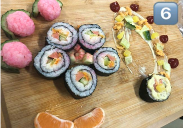 本次寿司大会共分为两个阶段,第一个阶段是做寿司,每组社员在学姐学长的指导下成功做出成品并相互品尝;第二个阶段是评选作品,每个小组参与评选,主持人依据名次颁发奖品。至此,本次寿司大会圆满结束。