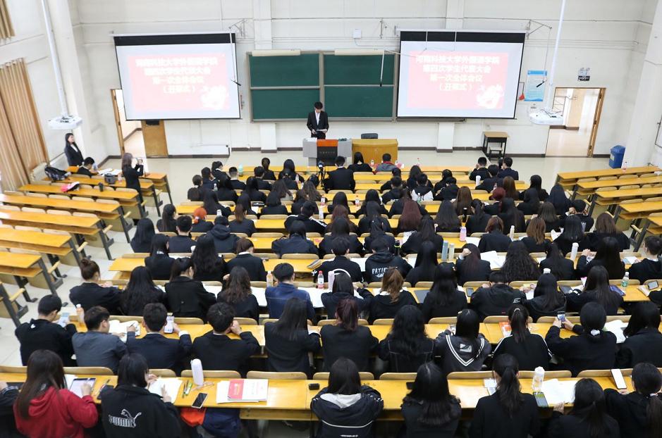 下午四时三十分,9999js金沙老品牌第四次学生代表大会第一次全体会议(开幕式)于公教四301隆重召开。9999js金沙老品牌团委书记万磊老师,校学生会主席团成员林津,经济学院学生会执行主席杨旭升出席本次大会。本次会议由2017级同学于子芮主持。在庄严地合唱过《国歌》《团歌》后,校学生会主席团代表林津及经济学院学生会执行主席杨旭升相继发言,对本次大会致以热烈的祝贺和衷心的祝福。万磊老师在发言中对学生会全体成员提出了以下要求:准确定位,勿忘宗旨。正确理解“四自”含义,坚持党的领导。准确认识自我责任,为同学服务,提升自身素质;严格要求,以身作则。把学习放在首位,成为外院学生的学习楷模,做好学生的本职工作。做好学生干部的本职工作,服务他人,提升自己;大胆管理,尽职尽责;团结协作,密切配合。协调各部门职能,相互配合,加强凝聚力和向心力,积极沟通,收获经验。