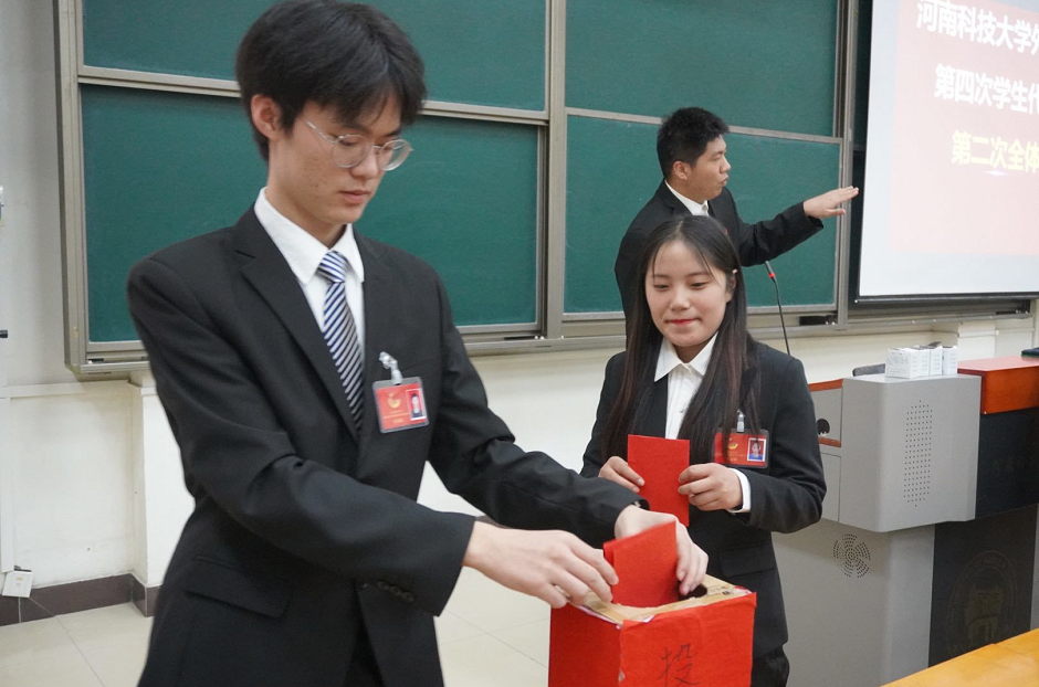 下午五时四十分,第二次全体会议于公教四301召开,大会听取了新一届学生会主席候选人王晓莹同学、新一届学生会副主席候选人侯创新、于兆东同学的竞选演讲,公布了常代会代表名单,并采取等额选举的方式进行匿名投票。主席团第二次会议随后召开,对选举结果进行宣布计票。