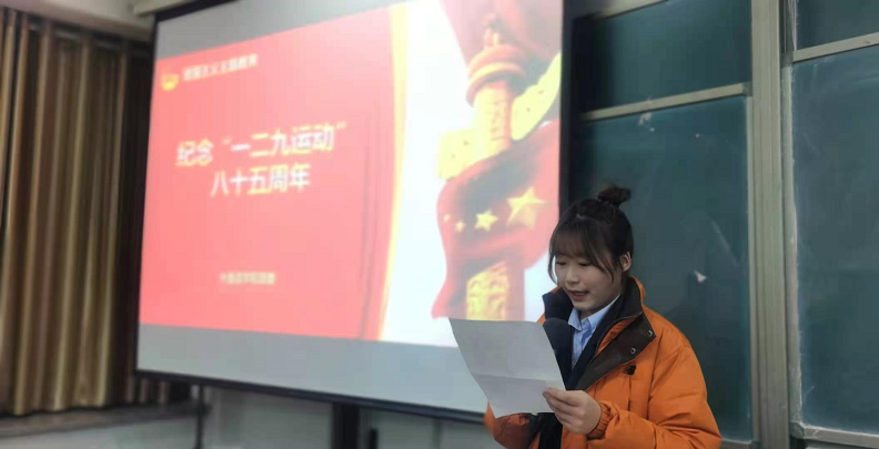 2020级团总支部书记霍莹同学进行主题为《铭记历史,不忘初心》的演讲,以真挚的感情缅怀先烈。随后,在场同学共同观看了一二九运动历史纪录片。重温那段波澜壮阔的历史,培养了同学们的爱国主义情怀,在缅怀先烈,致敬先烈的同时,激励大家脚踏实地,不忘初心,牢记使命。