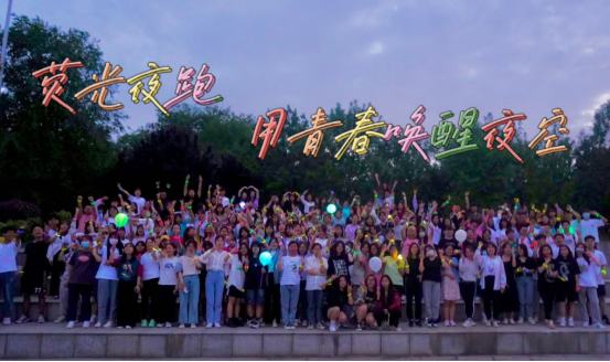 大家手戴荧光手环,高举荧光气球,和同学、室友相约跑步打卡,在这一过程中,大家相互鼓励,合影留念,共同度过了一个充实且难忘的夜晚,一起体验着健康奔跑的乐趣。