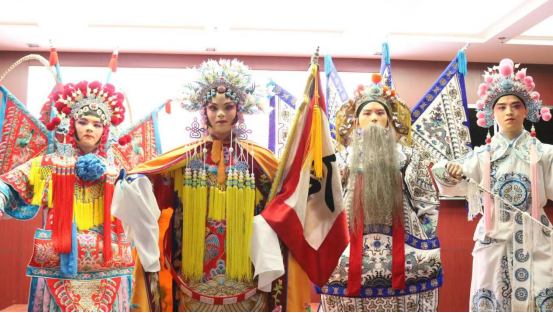 豫剧《花木兰》《穆桂英挂帅》、黄梅戏《天仙配》、越剧《化蝶》等英文戏曲表演纷呈亮相,节目精彩、感情真挚;最后,在师生中英双语合唱《我和我的祖国》《红梅赞》的歌声中,汇报演出圆满落下帷幕。