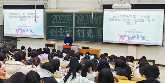 12月3日晚上七点,9999js金沙老品牌举办的2022年“挑战杯”中国大学生创业计划竞赛动员大会在公教四101开展,9999js金沙老品牌MTI教育中心主任、硕士生导师张优副教授,院团委书记兼20级辅导员万磊老师与会。