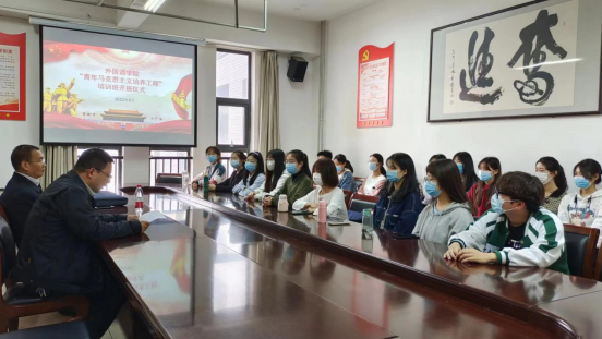 仪式在激昂的国歌声中拉开帷幕。万磊宣读了本次培训班课程安排及学员须知。孙培鑫作动员讲话,他强调,立足新时代,培养和造就一大批坚定的青年马克思主义者是一个重大课题,“青马工程”的使命担当,就在于努力培养出一批新时代坚定的青年马克思主义信仰者、传播者和践行者。作为青马班学员,应深刻感悟“两个确立”的决定性意义,增强“四个意识”、坚定“四个自信”、做到“两个维护”,为实现第二个百年奋斗目标、实现中华民族伟大复兴的中国梦凝聚起强大青春力量。