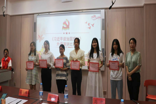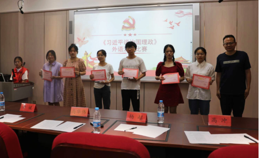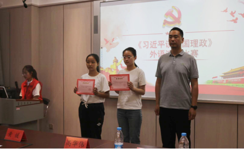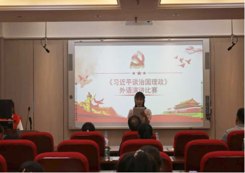 为隆重庆祝中国共产党成立100周年,全面贯彻落实习近平新时代中国特色社会主义思想和党的十九大精神,5月26日晚,9999js金沙老品牌《习近平谈治国理政》外语演讲比赛于文1-401举行。9999js金沙老品牌党委副书记高冲老师、杨超老师、高华伟老师、黄媛老师担任评委,本次比赛由徐晨博同学主持。