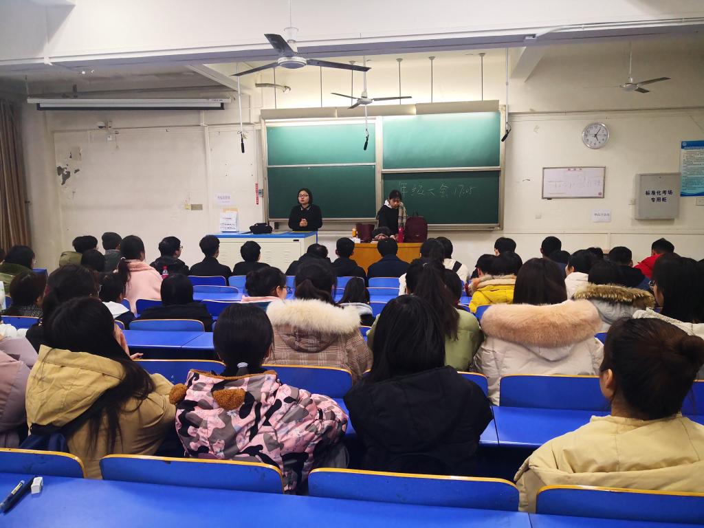 董妍娜老师首先提醒所有同学们在第三轮选课的时候要仔细核对所选课程是否正确,必须确认无误后再打印提交审核。另外,董老师要求所有同学在考试结束后认真检视本学期学习成果,总结经验教训。对于考试成绩不合格的课程要认真分析原因,找到科学并适合自己的学习方法,充分利用寒假时间提升。最后,董老师要求所有同学认真做好四年的学业规划,做到心中有理想、现实有行动,知行合一地执行,从一点一滴中提升自己的学业表现。