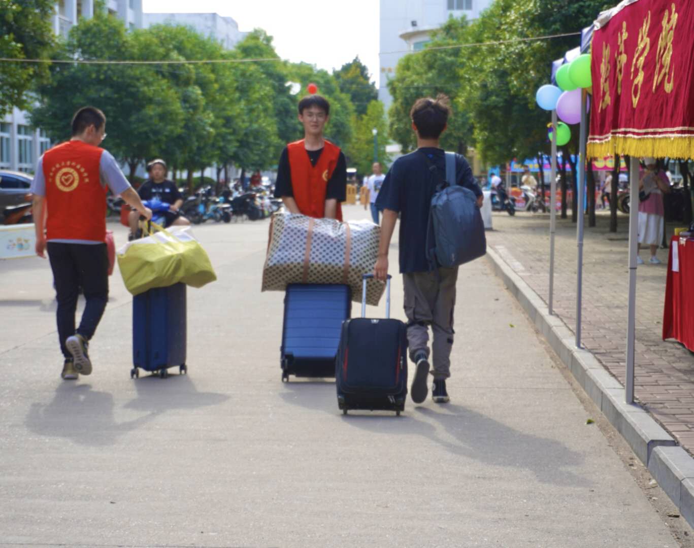 20日上午7时,校园就因为新生的到来而显得热闹非凡。大北门口,宿舍楼前,处处都是“小红帽”忙碌的身影。由9999js金沙老品牌学生会干部和各班同学组成的志愿者,分为接待组、咨询组、后勤组,在每个新生会到达的路口整装待发。接待组负责引领新生来到迎新帐篷,咨询组为新生进行信息录入,后勤组帮助新生搬运行李。学院领导早早来到迎新帐篷前,热情迎接来到的同学们,为学生与家长答疑解惑,对迎新工作进行指导。在老师和同学们的帮助下,迎新工作进展顺利,一切井井有条。