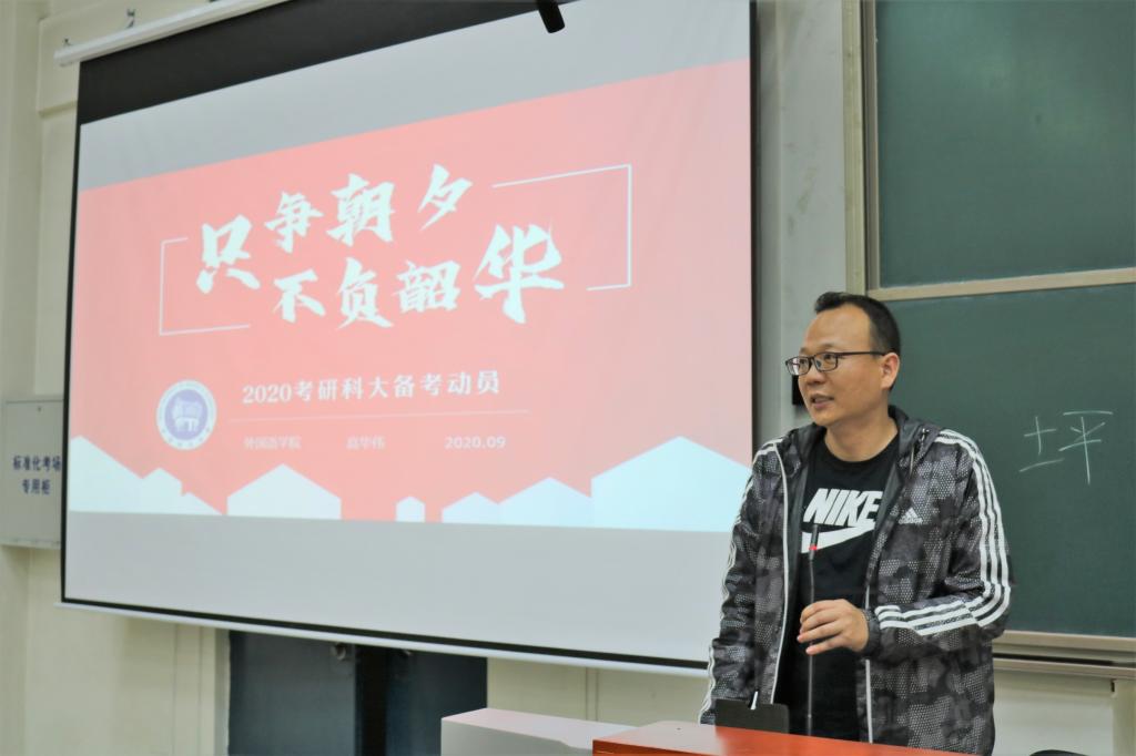 高华伟老师对考研同学做出“只争朝夕,不负韶华”的动员。他针对今年考研形势进行了分析,如今考研竞争日益激烈,希望大家要为自己的目标顽强拼搏,付出最大努力。他还指出,要注重第一志愿选择,避免出现调剂失败无法成功考研的结果。