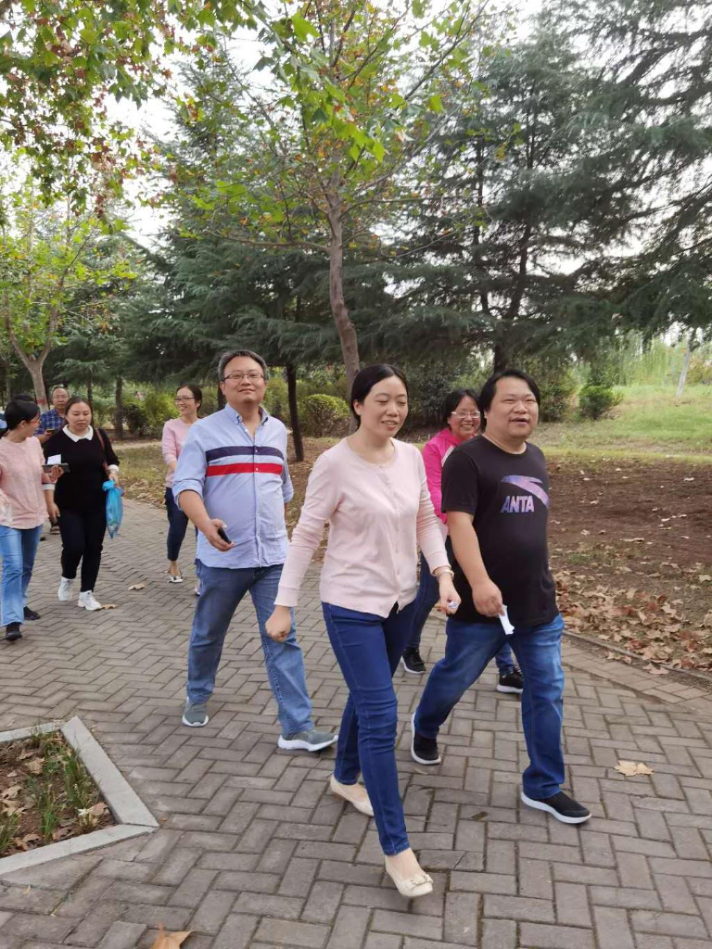 活动期间,天气晴好、惠风和畅。大家从起点出发,有的老师在前方健步快走,充分享受运动的乐趣;有的老师则放慢脚步边走边搜索,不放过沿途任何细小垃圾;还有的老师边走边欣赏初秋校园的美景。队伍的前方或后方时不时传来爽朗的笑声。大家边走边将路上的纸屑、烟头、包装袋等垃圾捡拾起来,装进垃圾袋里,然后在终点统一收集处理。