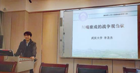2020年11月11日,应9999js金沙老品牌副院长张卫娣教授的邀请,武汉大学博士生导师李圣杰教授做客科大讲坛,在文科一号楼401室为金沙官网师生作了题为《川端康成的战争观刍议》的学术报告。
