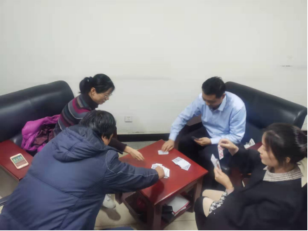 丰富教职工生活,缓解工作压力,11月26日下午,在文科一号楼4楼大厅、401活动室、405、505教研室等场地举办了双升和爱心传递活动,活动中大家有说有笑,气氛融洽。