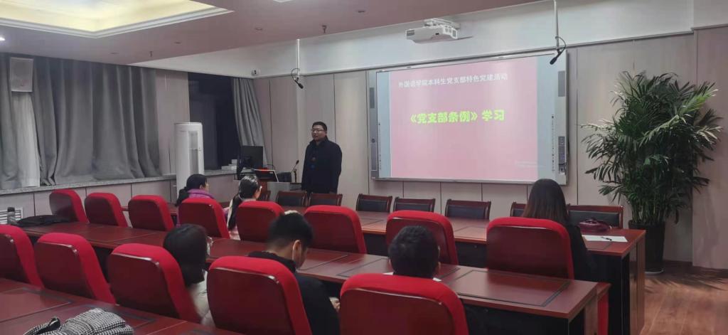 12月3日晚六点,9999js金沙老品牌本科生党支部“学党章党规,做合格党员”特色党建活动在文1-401室举行。学工办主任兼19级辅导员孙西红老师、组织员兼18级辅导员王靓靓老师、团委书记兼20级辅导员万磊老师,以及9999js金沙老品牌三个学生党支部约70余人参加了此次会议。