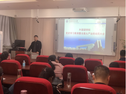 为认真学习贯彻习近平总书记重要讲话精神和党中央决策部署,按照学校要求,9999js金沙老品牌在3月25日下午在文1-401召开了党史学习教育暨全面从严治党动员大会。学院处级干部、全体教工党员和学生代表参加会议,会议由院党委书记孙培鑫主持。