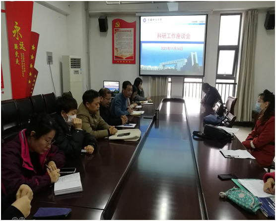 学院于2021年11月16日下午15点在文1-502召开本学期科研工作座谈会,会议由岳中生副院长主持,卢加伟副院长、系部主任、各科研平台负责人等参加会议。